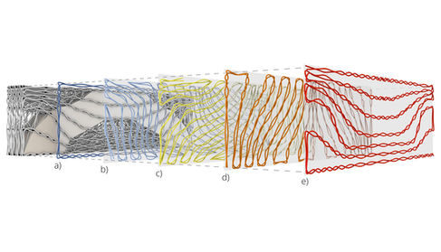 The research also uses structural principles as a guiding factor for the development of the material system and employs an integrative co-design approach to manage the reciprocal relationships between structural performance, material system behaviour and fabrication processes. Digital studies of mechanical properties and computational analyses inform the distribution, orientation, and gradation of the materials.