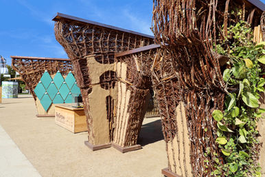 Situated within the exhibition area Erlebnisraum Bioökonomie at the Federal Horticultural Show (BUGA) 2023 in Mannheim, ReGrow Willow incorporates concepts of microclimatic adaptation and local energy harvesting, that serve to exemplify a holistic transition towards establishing a sustainable built environment.